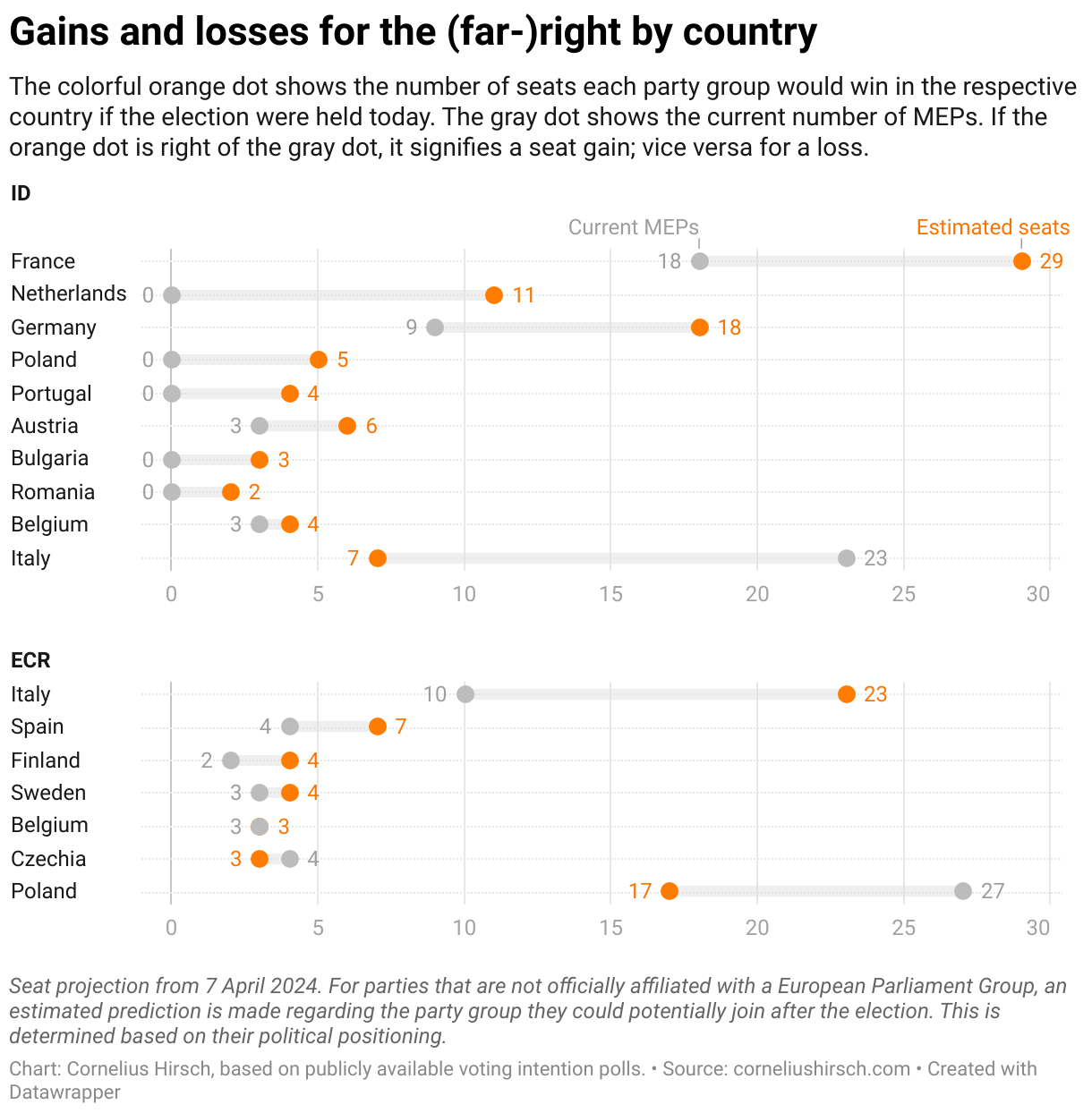 And where is the surge in support for right-wing and far-right parties most profound? Where can ID and ECR expect to pick up the most additional seats in the European Parliament election?